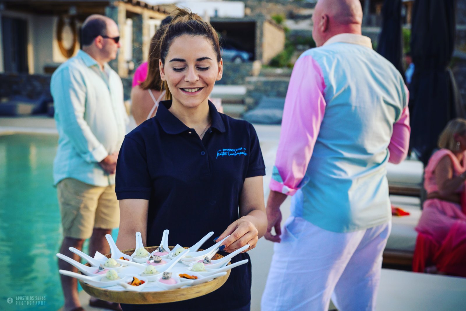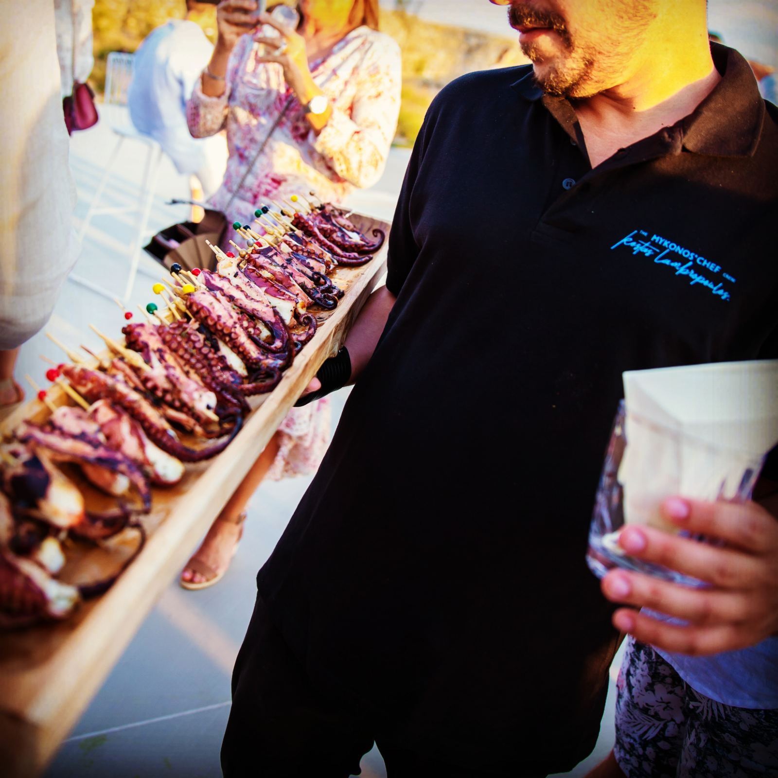 Our staff consists of chefs, waiters, butlers, sommelier. Each of our staff members has knowledge of greek cuisine, and a strong desire to enrich the experience of your vacations. All Mykonos’ Chef staff members participate many years in restaurant and private services in Mykonos island.